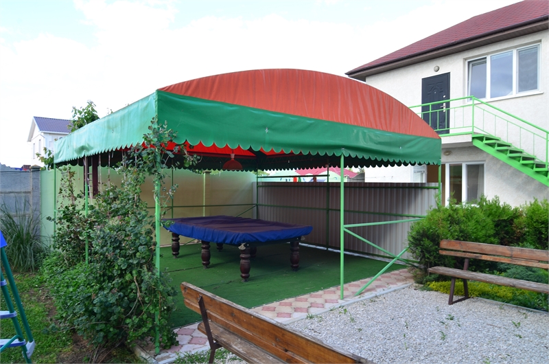 Территория гостевого дома утопает в зелени цветов и кустарников. Для семейного отдыха в Заозерном на свежем воздухе предусмотрены беседки и удобные лавочки.